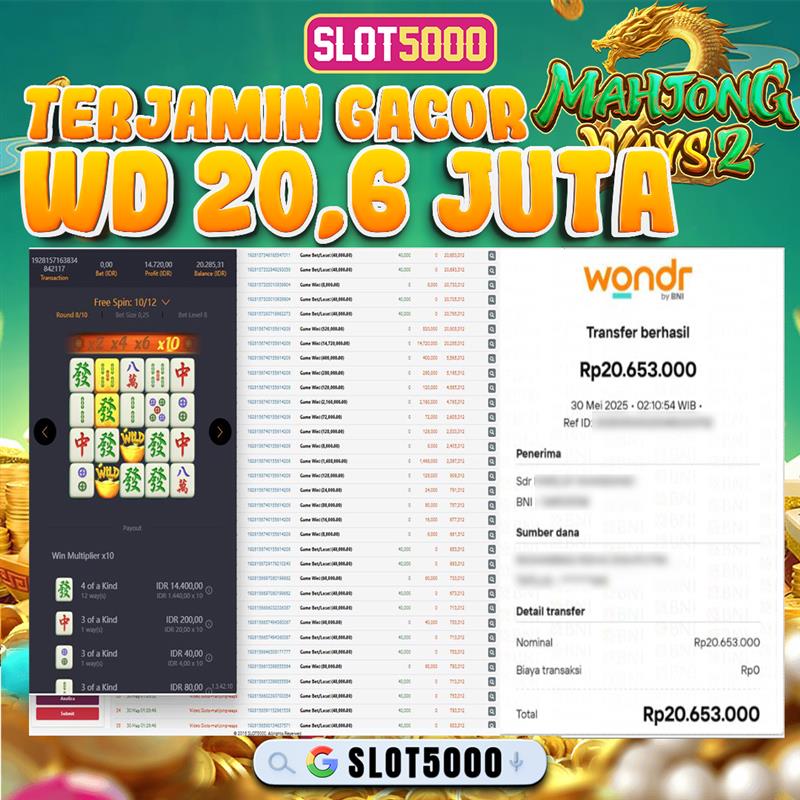 SLOT5000 merupakan bandar togel dan slot online yang membayar semua kemenangan member hingga lunas. Setiap pembayaran pada situs kami dilakukan dengan cara transfer ke rekening tujuan yang sudah di daftarkan pada situs togel online kami, Pembayaran hanya dapat di proses jika rekening yang di daftarkan telah valid dan dapat di transfer.  Semua kemenangan member yang mendapatkan hadiah jackpot terbesar akan kami posting agar semua pemain dapat melihat bandar situs terpercaya Slot5000 ini membayar semua kemenangan member hingga lunas. Setiap postingan yang kami posting akan kami lakukan sensor pada nomor rekening 4 digit dan nama rekening untuk menjaga privasi dan kerahasiaan member. Postingan Jackpot yang kami posting agar member atau pemain yang belum pernah bermain bisa melihat bandar togel Bukan Kaleng Kaleng Seperti Slot5000 ini, Semua postingan jackpot yang kami posting dapat di lihat data keasliannya melalui nomor reff yang di tunjukan pada bank atau mbanking saat kita melakukan transfer.