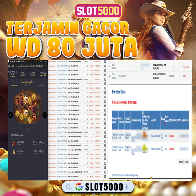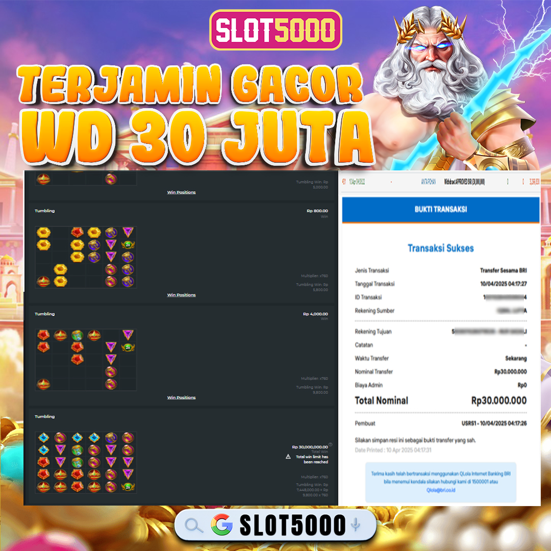 SLOT5000 merupakan bandar togel dan slot online yang membayar semua kemenangan member hingga lunas. Setiap pembayaran pada situs kami dilakukan dengan cara transfer ke rekening tujuan yang sudah di daftarkan pada situs togel online kami, Pembayaran hanya dapat di proses jika rekening yang di daftarkan telah valid dan dapat di transfer.  Semua kemenangan member yang mendapatkan hadiah jackpot terbesar akan kami posting agar semua pemain dapat melihat bandar situs terpercaya Slot5000 ini membayar semua kemenangan member hingga lunas. Setiap postingan yang kami posting akan kami lakukan sensor pada nomor rekening 4 digit dan nama rekening untuk menjaga privasi dan kerahasiaan member. Postingan Jackpot yang kami posting agar member atau pemain yang belum pernah bermain bisa melihat bandar togel Bukan Kaleng Kaleng Seperti Slot5000 ini, Semua postingan jackpot yang kami posting dapat di lihat data keasliannya melalui nomor reff yang di tunjukan pada bank atau mbanking saat kita melakukan transfer.